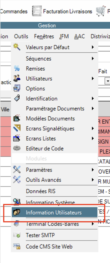 - Menu -> Outils -> informations Utilisateurs