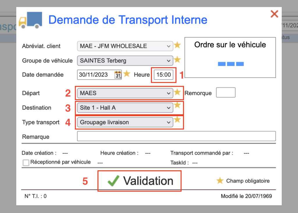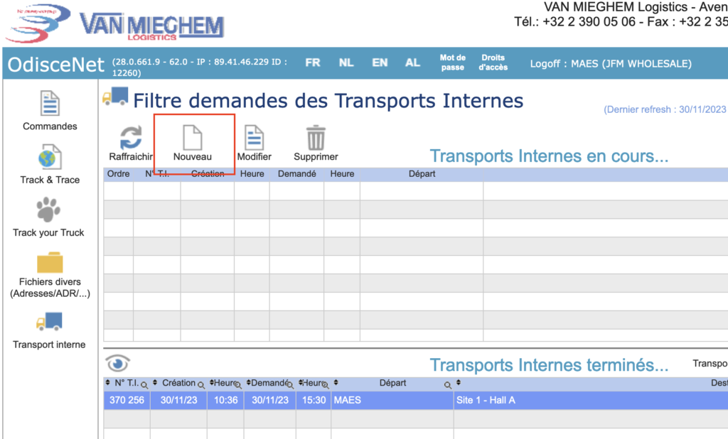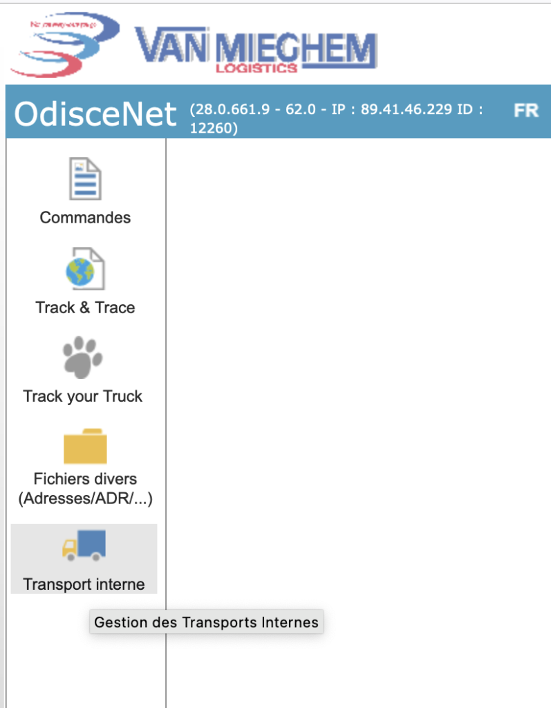 Cliquer sur Transport interne (à gauche) – 4ième icone