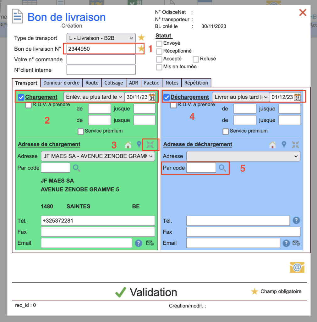 - Indiquer n° de bon: En général, c’est le numéro de la commande Mercator