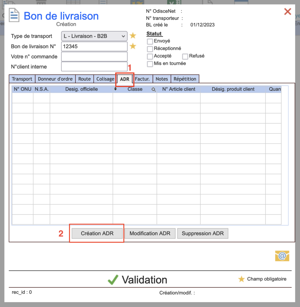 Vous voilà revenu sur la boite de dialogue du bon de livraison