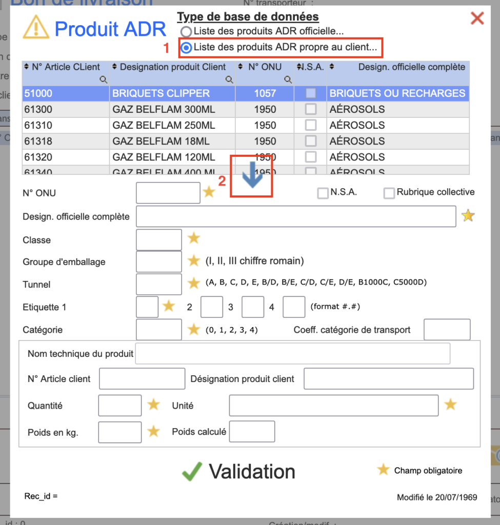 Ce cadre se remplis automatiquement après avoir validé avec la flèche bleue. - Nom Technique: