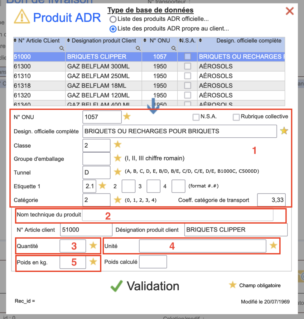 Remplir le nom technique UNIQUEMENT pour les UN 1268 et 3295 (devrait se remplir automatiquement également). - Quantité: