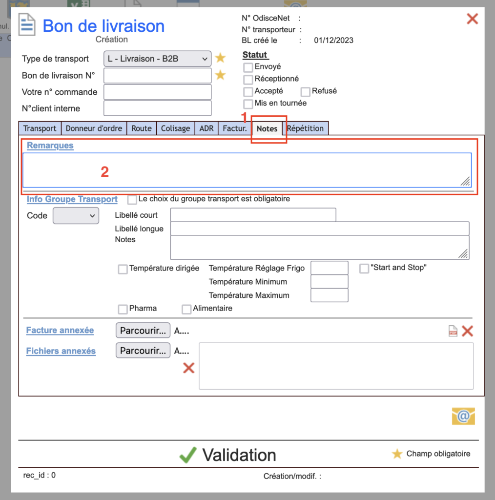 - Remarques: Indiquer une remarque si vous en avez (ex: ref client,…)