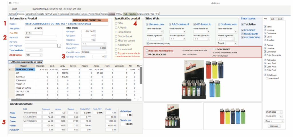 Le chiffre indique la quantité de vente minimale par défaut lors des prises de commandes sur Mercator et sur les sites web. - Condit. Article: toujours 1