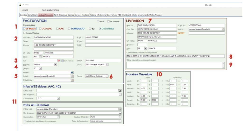 Client JF MAES ou AAC ou 4C ou DISTRIWIZ.