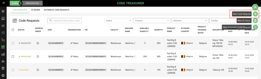 Cliquer sur le + vert en haut à droite puis « New Code Request »
