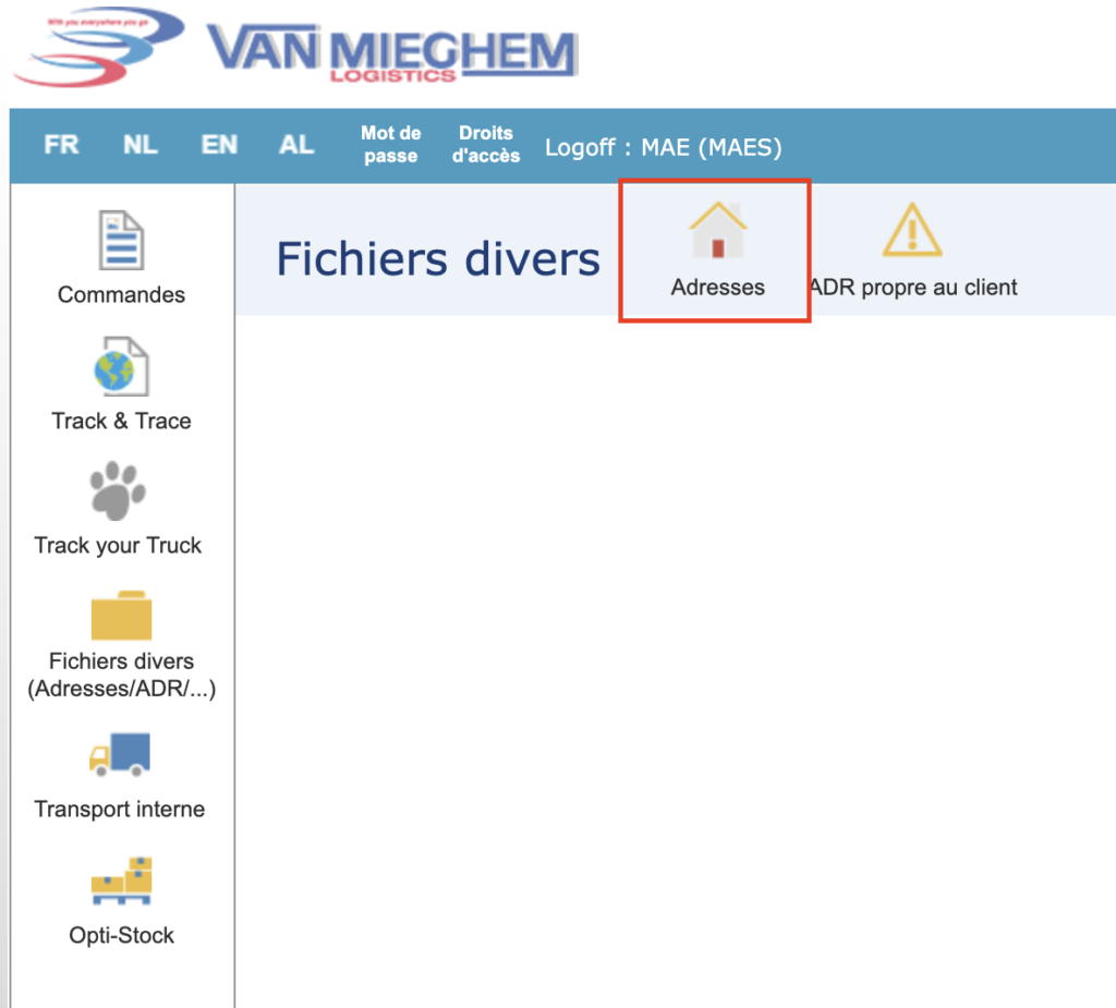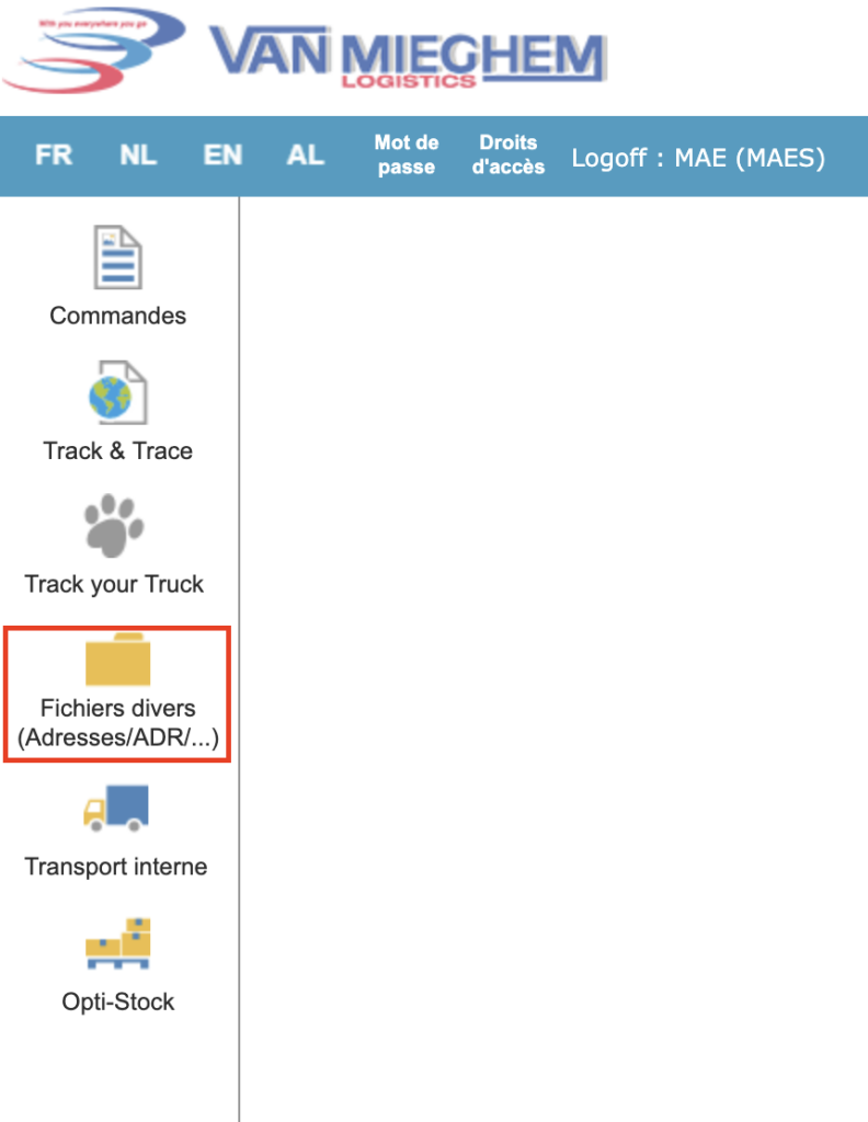 Une fois connecté, cliquer sur « Fichiers divers (Adresses/ADR/…) »