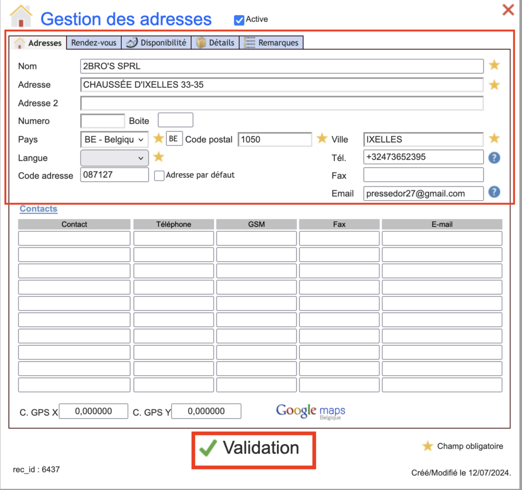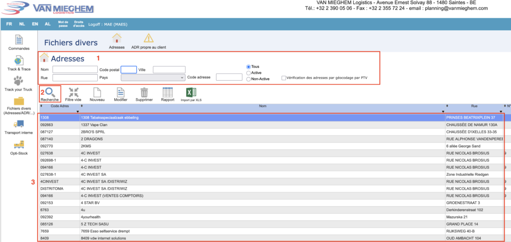 - Les résultats sont dans le cadre. Il suffit de double cliquer sur le client pour vérifier et aller modifier l’adresse.